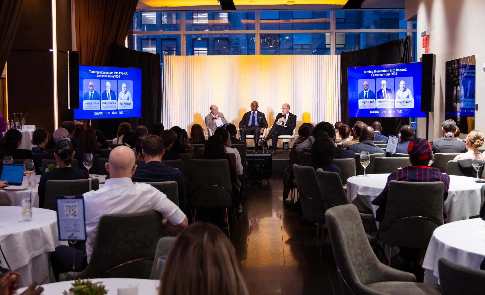 A high-level panel featuring Ana Toni (COP30 Brazil), Tariye Gbadegesin (Climate Investment Funds), Valerie Hickey (World Bank), and James Muraguri (Institute of Public Finance) discussed how to sustain momentum from FfD4 to COP30.